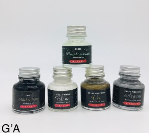 Authentique: appelée "encre des notaires", cette encre noire était utilisée par les notaires pour la rédaction d'actes officiels. Elle est fabriquée à partir de bois de campêche dont le tanin lui confère une exceptionnelle permanence jusqu'à trois siècles. Elle noircit au fil des ans.