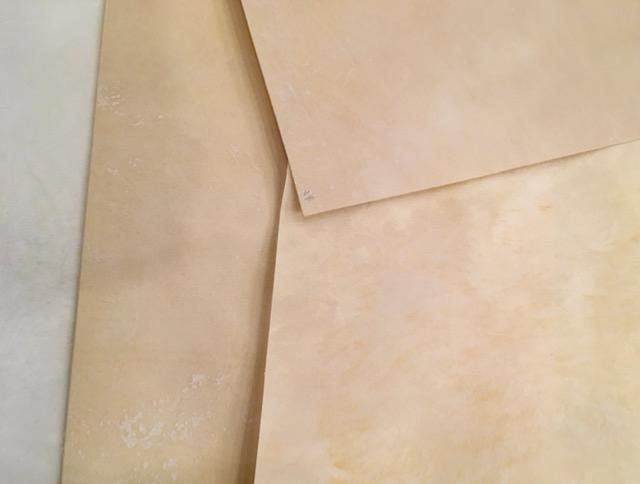 Etant un produit naturel, chaque feuille (épaisseur et grain) est unique et différente (surtout à partir du 5/06 les parchemins restants  chèvre A4, chaque feuille est vraiment différente : antique = très pigmenté et foncé)